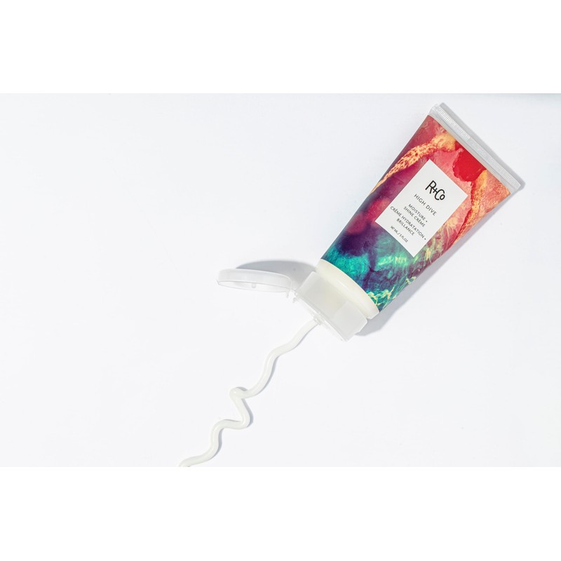 Plunge into deep hydration and reflective shine with HIGH DIVE. Formulated to smooth and seal the hair, it moisturizes, softens and frowns out frizz. R+CO IS A COLLECTIVE OF SOME OF THE MOST KNOWLEDGEABLE HAIRSTYLISTS THAT HAVE COME TOGETHER TO MAKE A LINE OF PRODUCTS. MODERN FORMULATIONS OFFER IMMEDIATE RESULTS, EMBODYING EXPERIMENTATION, DESIGN, ARTISTRY, AND PASSION.