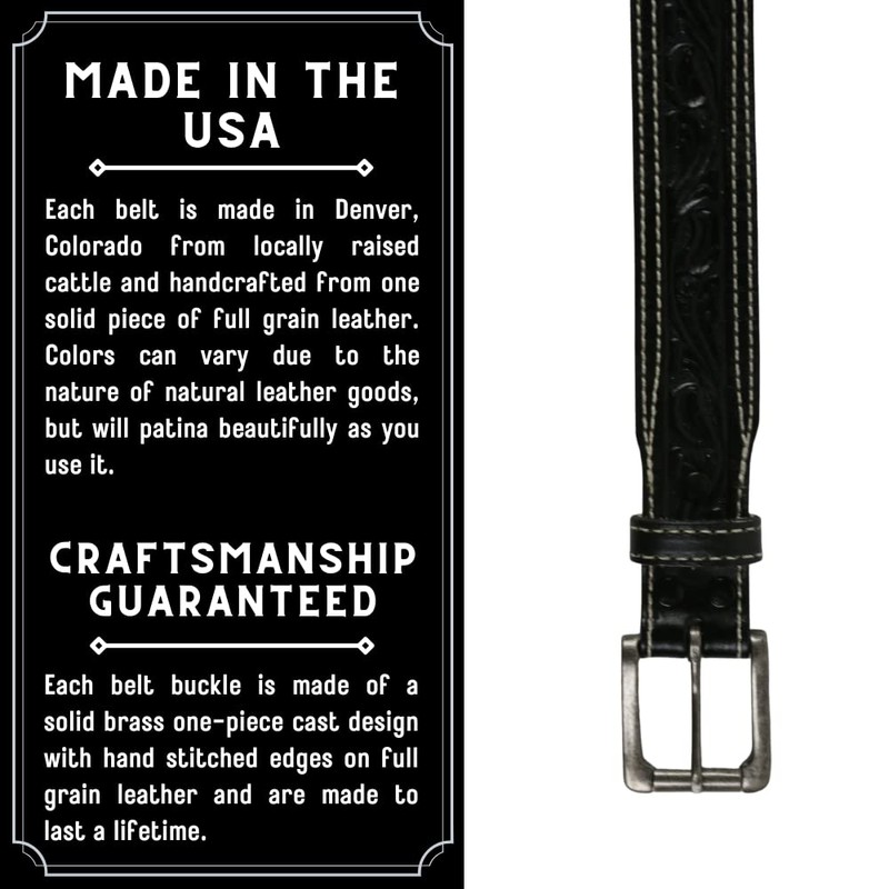 - LOCALLY SOURCED - Each belt is made 100% from locally raised cattle of handcrafted one solid piece of full grain leather. Colors can vary due to the nature of natural leather goods, item may appear slightly different then pictured.