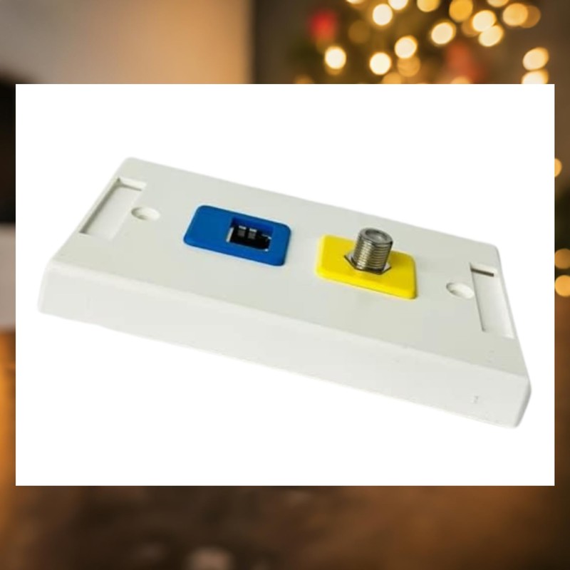 • Uniquely design BOX style Ethernet coaxial 2 port wall plate--One Coax F connector and one most elegant fully shielded Cat6A keystone coupler.