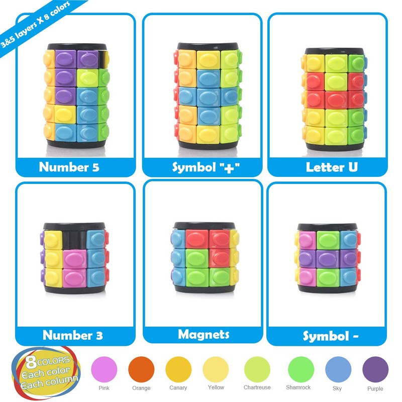 - 【Uso】no solo un juguete lógico, sino también un rompecabezas giratorio de deslizamiento. Es una combinación de cubeta mágico y rompecabezas, sus piezas de rompecabezas se pueden girar desde la izquierda y derecha alrededor del eje, así como deslizarse hacia arriba y hacia abajo. Entretenimiento en casa, aliviar el estrés, cultivar la paciencia, ejercer cerebro, hacer ejercicio, jugar en el viaje, o regalárselo a niños o ancianos.