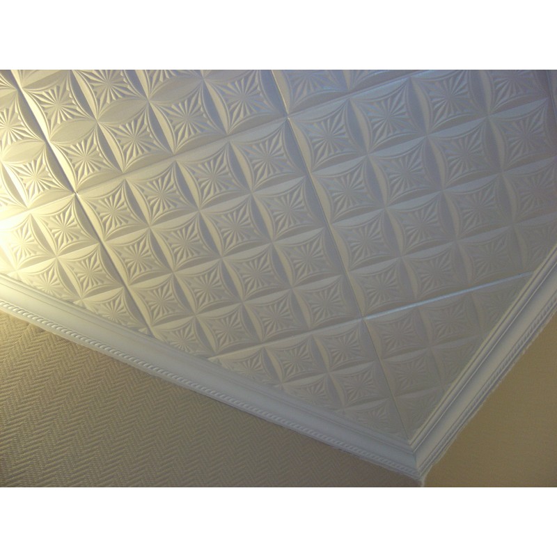 R40W 20 x 20 Tin Looking Styrofoam Glue Up White Ceiling Tile