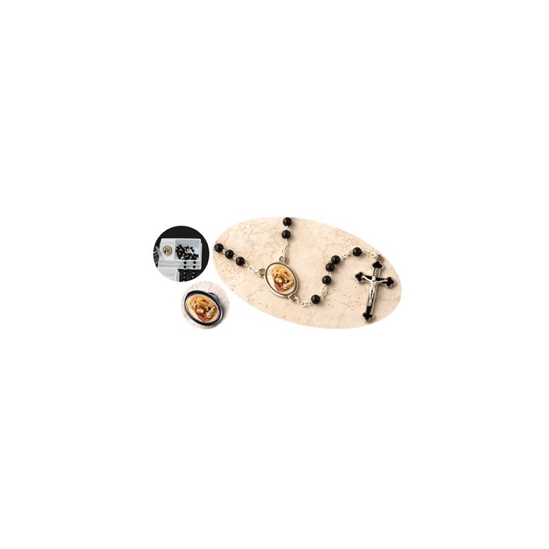 R704BK ROSARY FIRST COMMUNION BLACK WITH COMPANION PIN, 14.5" 4MM SFI