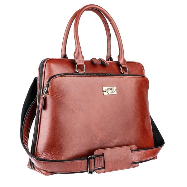 Rabbaniz Laptop Messenger shoulder bag: Genuine Leather work Briefcase 13.3 15.6 inch designer handbag (Tan, 15.6 Inches)