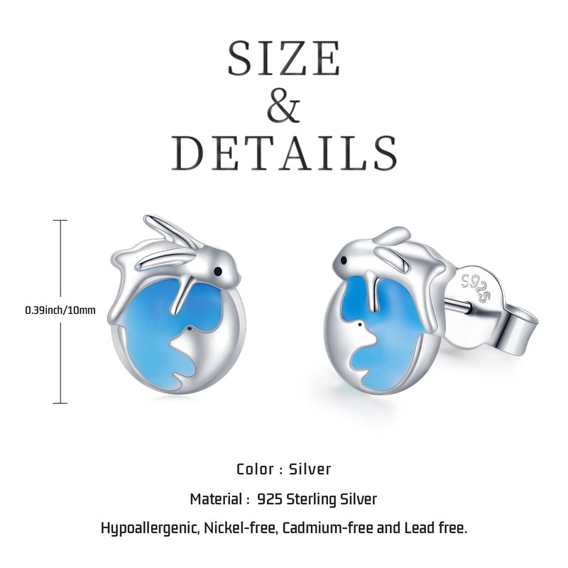 Rabbit Earrings Girls 925 Sterling Silver Hypoallergenic Bunny Earrings Rabbit On The Moon Planet Cute Animal Rabbit Gifts for Girls Women
