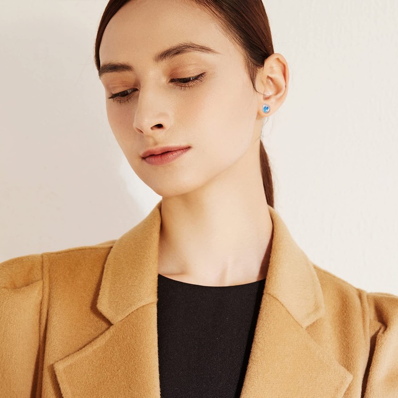 - 💎【Small Cute Stud Earrings】The blue earrings are made of 925 sterling silver. Hypoallergenic are friendly for sensitive ears. High polish finishing and not easy to fade, long time keep bright as new. Perfect to keep as a Daily Jewelry.