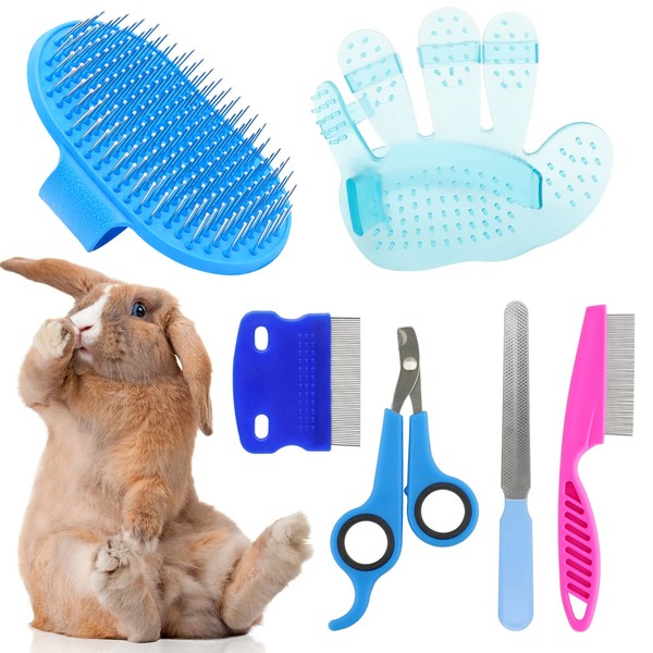 Rabbit Grooming Kit, Rabbit Brush for Shedding with Bunny Nail Clipper, Rabbit Nail Trimmers with Pet Combs for Hamster Guinea Pig Ferret by KALAMANDA(6 Pack)