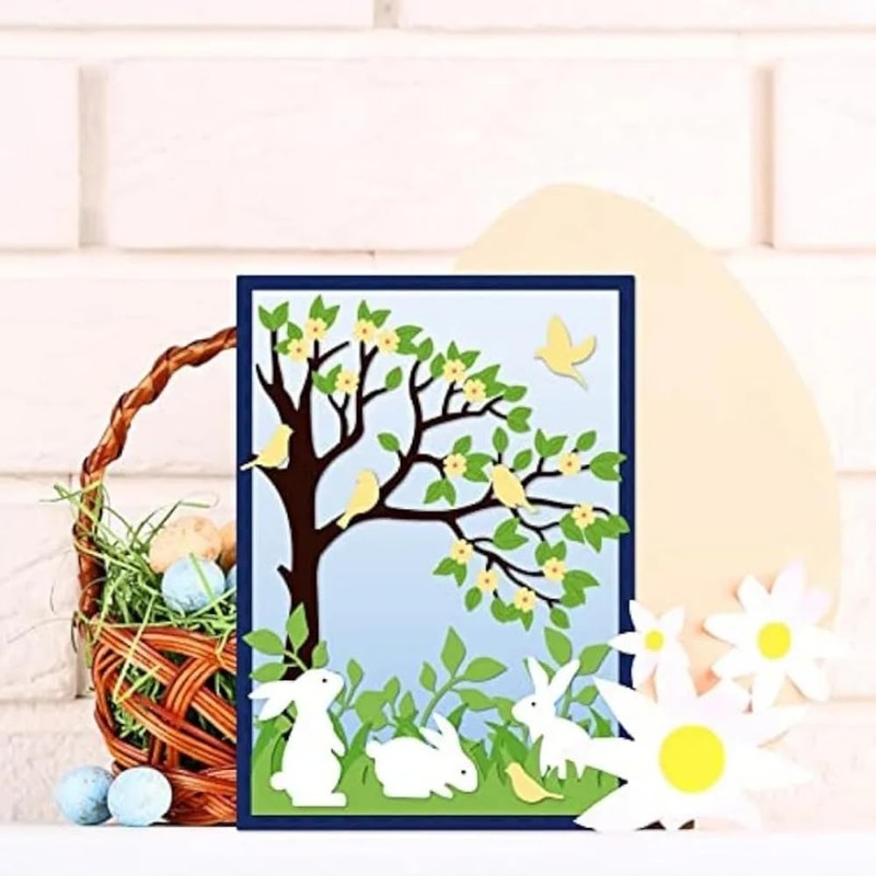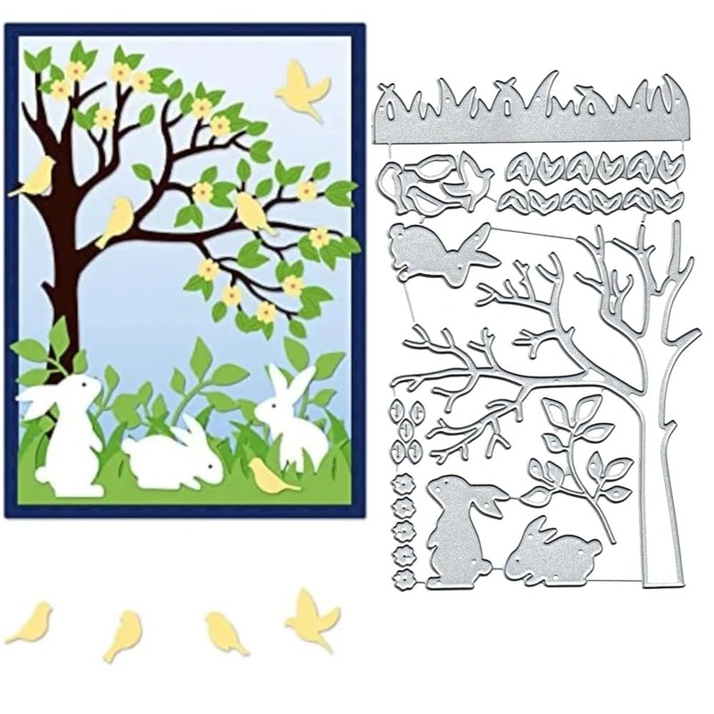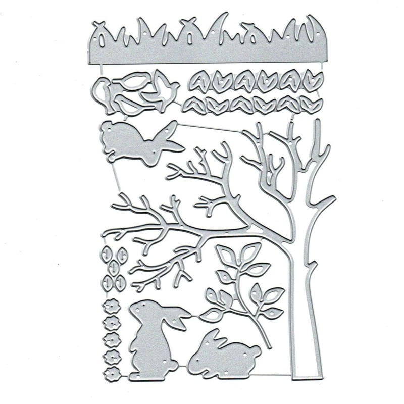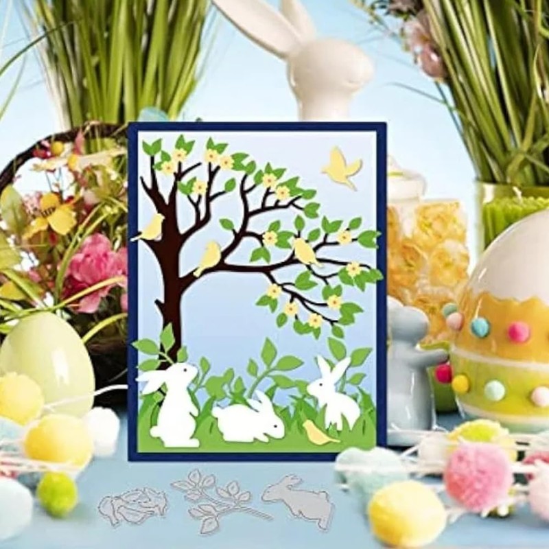 - ♥Pattern&Size: Rabbit Tree Frame shape, 13.3 x 11cm/5.24 x 4.33inch(Approx). Easter Rabbit Tree Frame Metal Dies Cut Stencils for DIY Scrapbooking Photo Album Decorative Embossing Paper Dies for Scrapbooking Card Making Supplies.