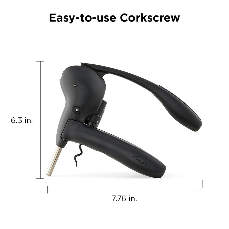 - SOLID METAL LEVER: The Rabbit Corkscrew is designed for ease and controlled leverage with it's solid metal lever and comfortable grip handles to give you stability, allowing you to easily remove any type of cork in one easy step.