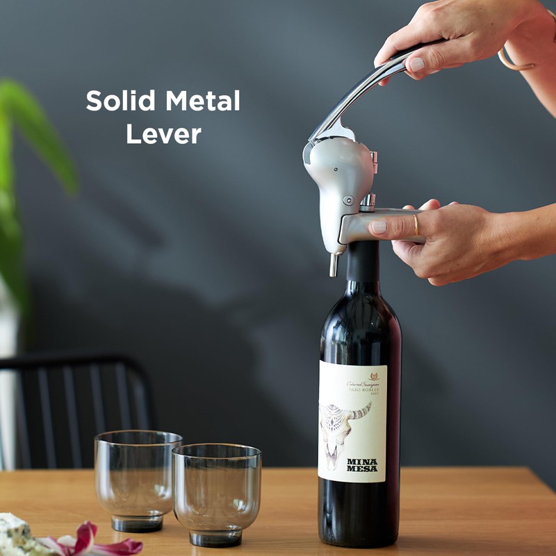 - OPEN WINE BOTTLES QUICKLY: Quickly and cleanly removes corks from any size wine bottle in seconds with a single pull, then easily eject the cork.