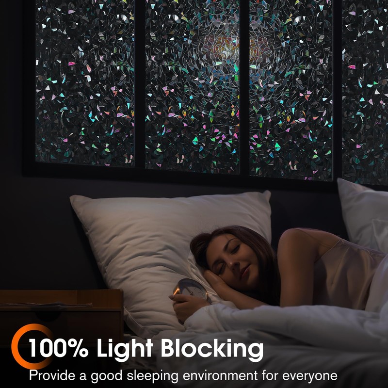 - Turn Day into Night: Bid farewell to blinding glares with our blackout window film, which blocks up to 100% of daylight. The window privacy film creates a pitch-black sleep environment for your family, ensuring optimal sleep quality. Suitable for those who suffer from sleep issues caused by strong light