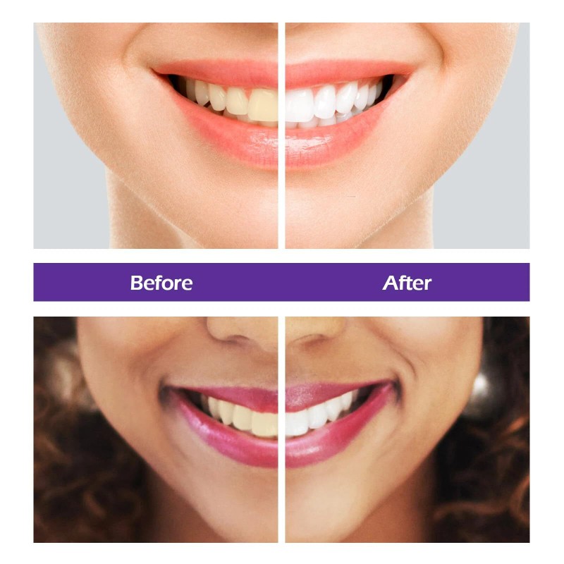 The color corrector Purple Toothpaste Serum dedicated for post-whitening treatment, adopts colour correction theory, it is non-invasive teeth treatment, the formulation do not react with deep stains but it could reduce yellow tones & brighten teeth.