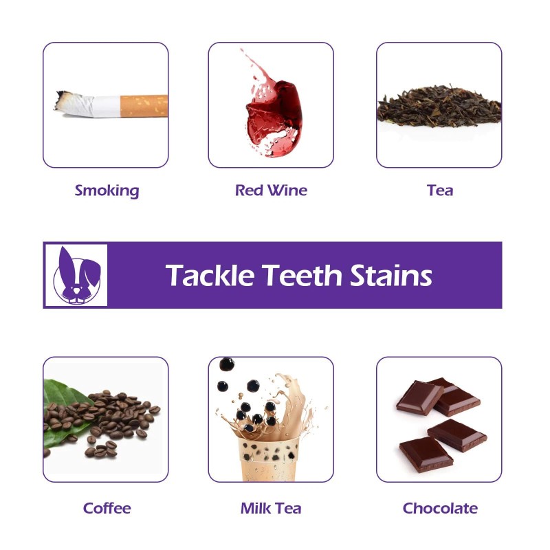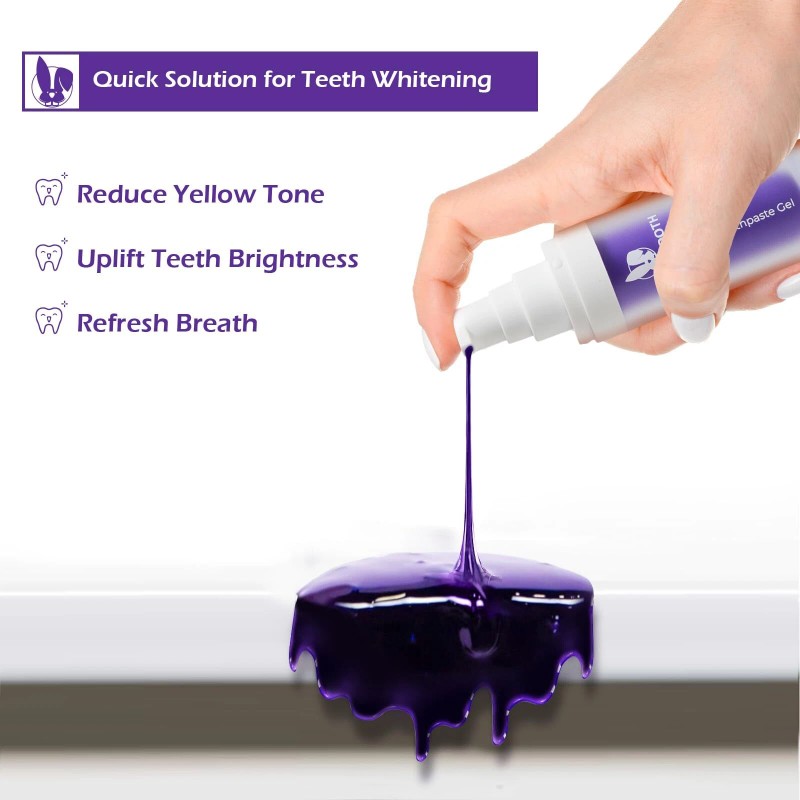 • , : Rabbitooth Purple Toothpaste Gel adopts colour theory technology, it is non-invasive treatment to reduce yellow tones & increase brightness.