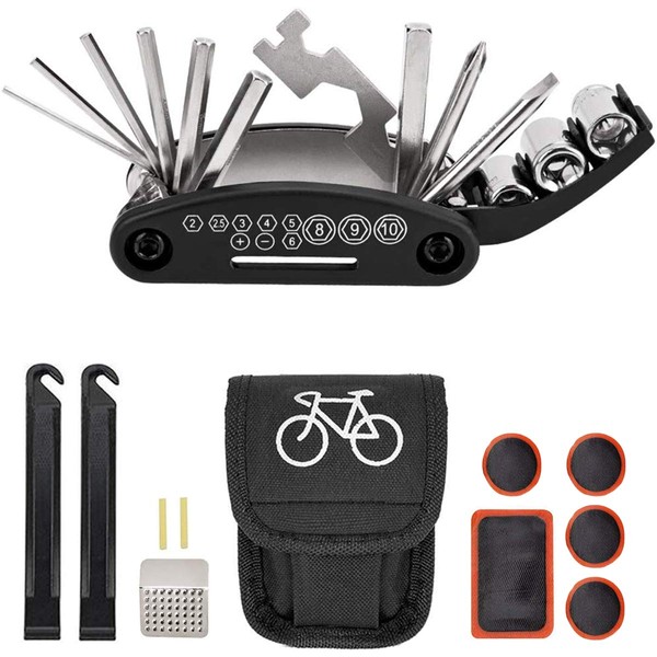 1. Kit de herramientas multifunción 16 en 1, todo en una herramienta que puede ayudarlo a reparar la mayoría de los problemas de su bicicleta.