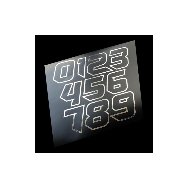Race Numbers Silver Chrome Outline Vinyl Decal Graphics x 6 Numbers per Sale (Send Message with Your 6 Number Choice)