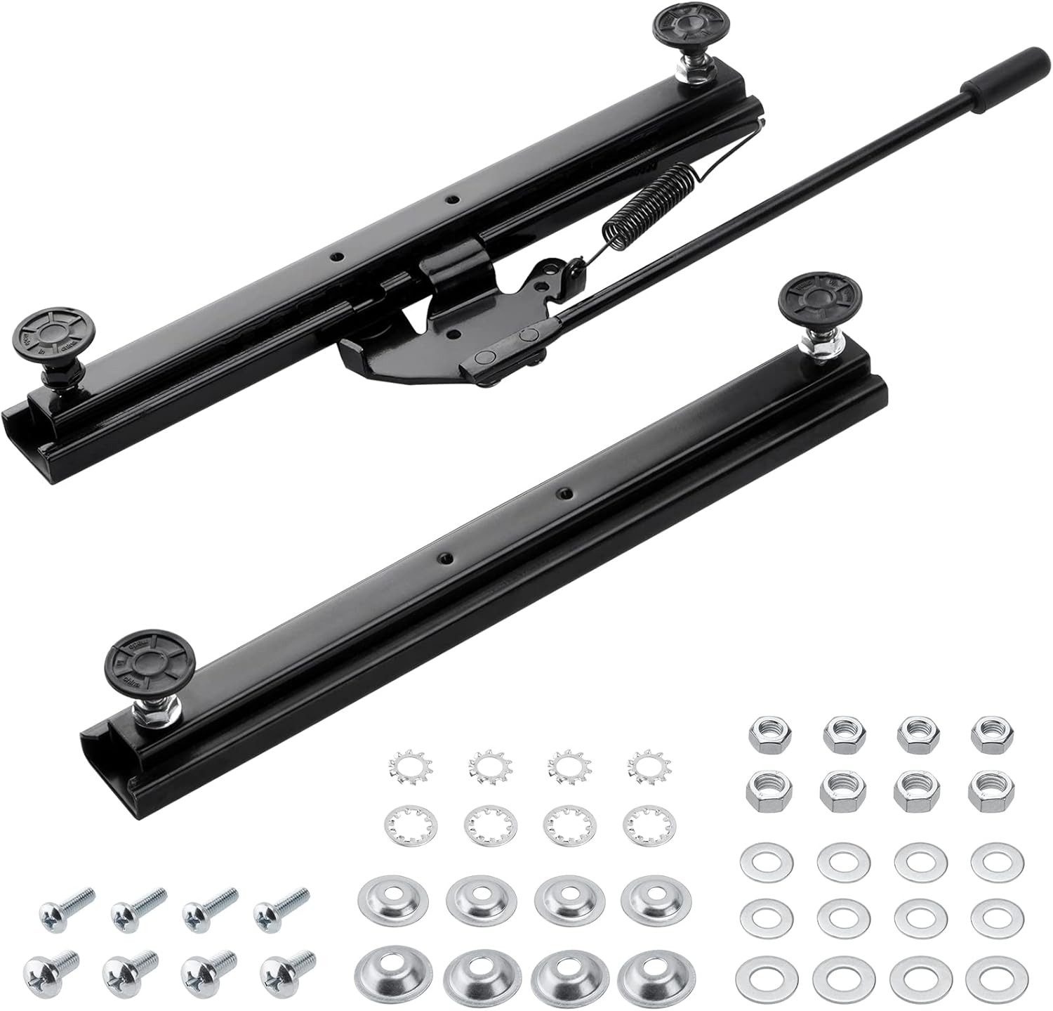 - Included Components: adjustment handle, two seat tracks, hardware