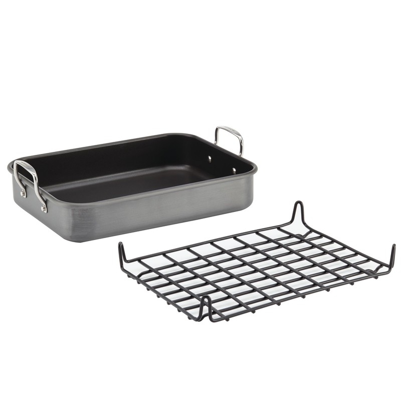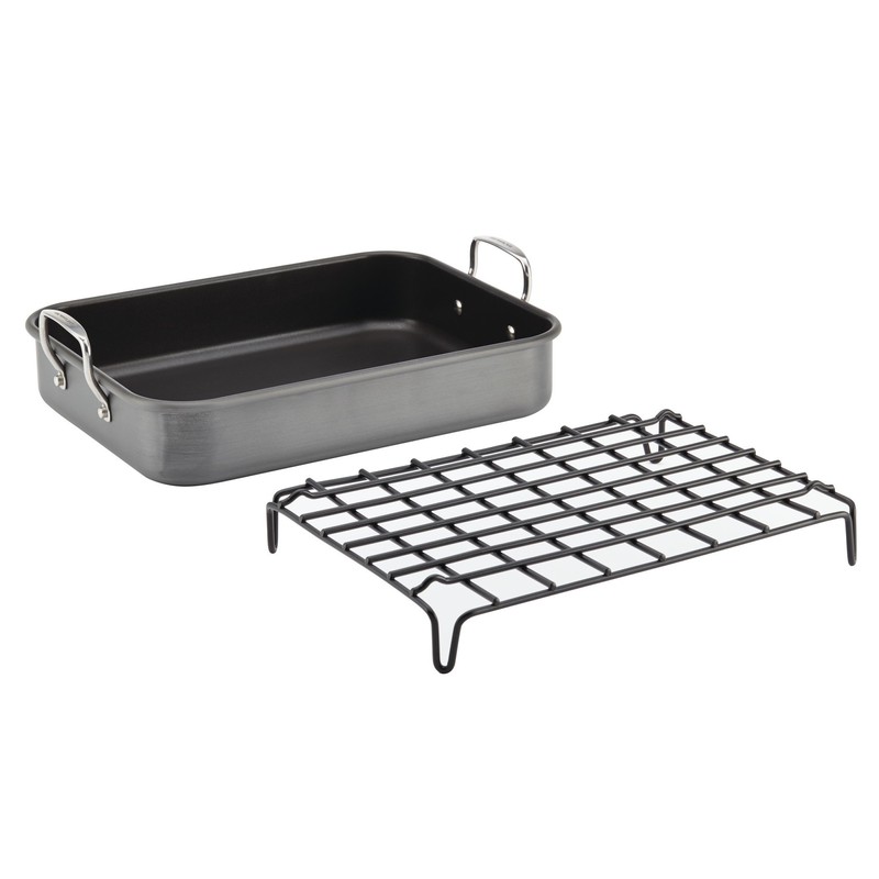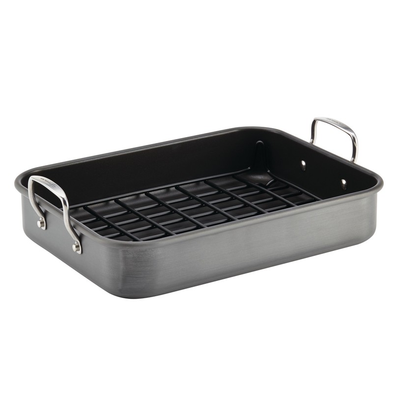 Rachael Ray Brights Hard Anodized Nonstick Roaster / Roasting Pan with Rack - 16 Inch x 12 Inch, Gray