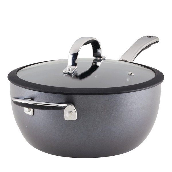 • WHAT YOU GET: A saucy, sauce-making hard anodized nonstick saucier pan from Rachael Ray that's optimized for durability and performance.