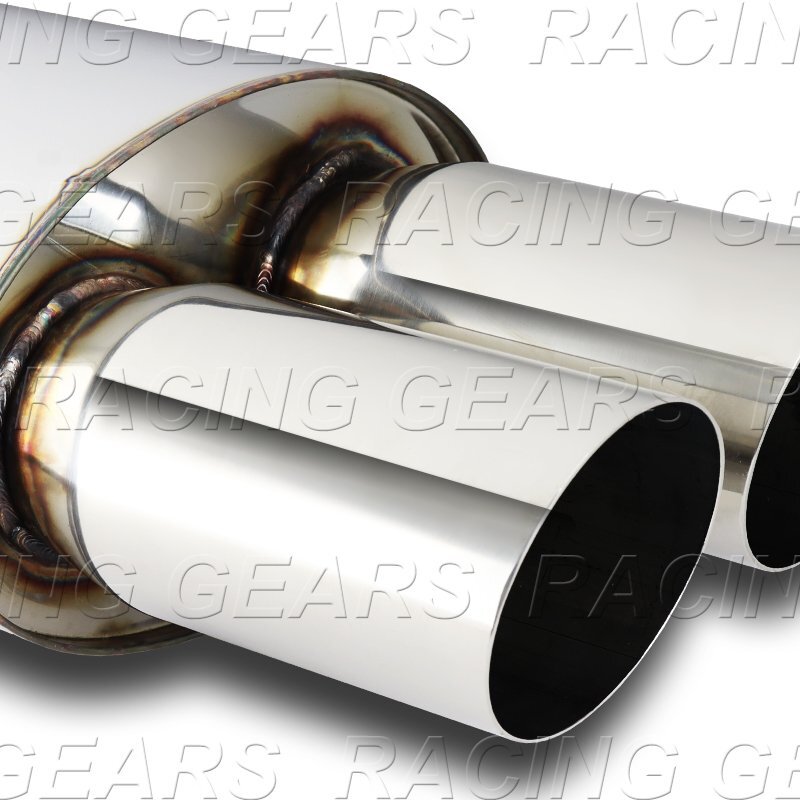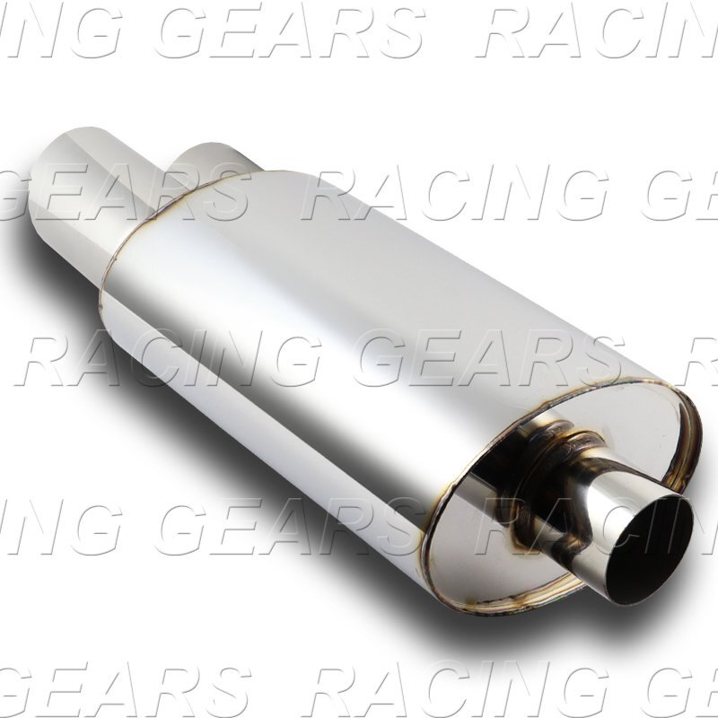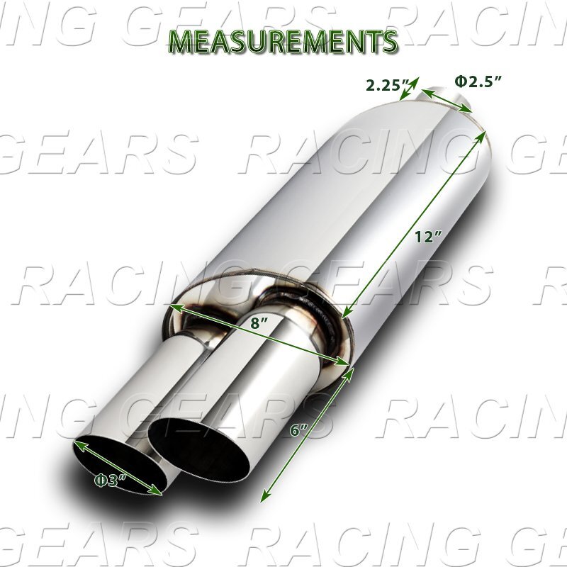 Racing_Gear 3" Dual Slant Tip T-304 Stainless Weld-On Exhaust Resonator Muffler 2.5" Inlet