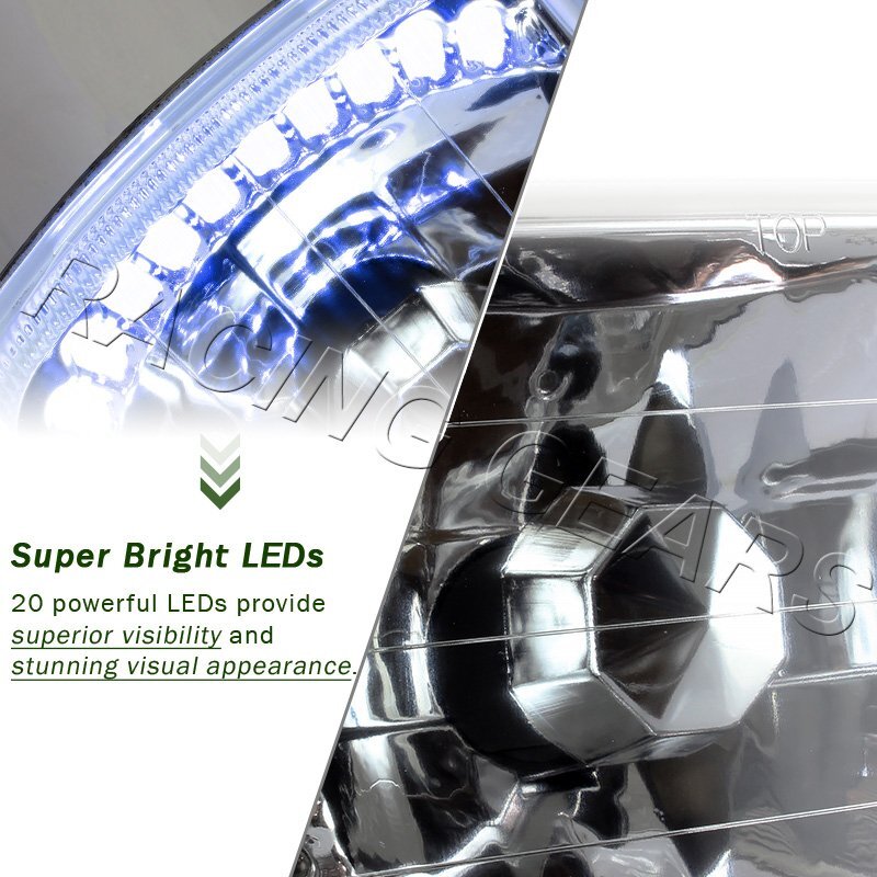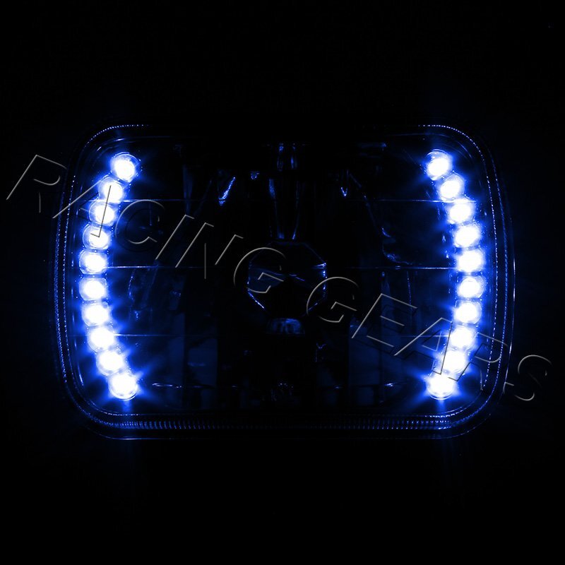 Racing_Gear 7"X6" H6014 H6052 H6054 SQUARE SEALED BEAM BLACK HOUSING BLUE LED HEADLIGHTS