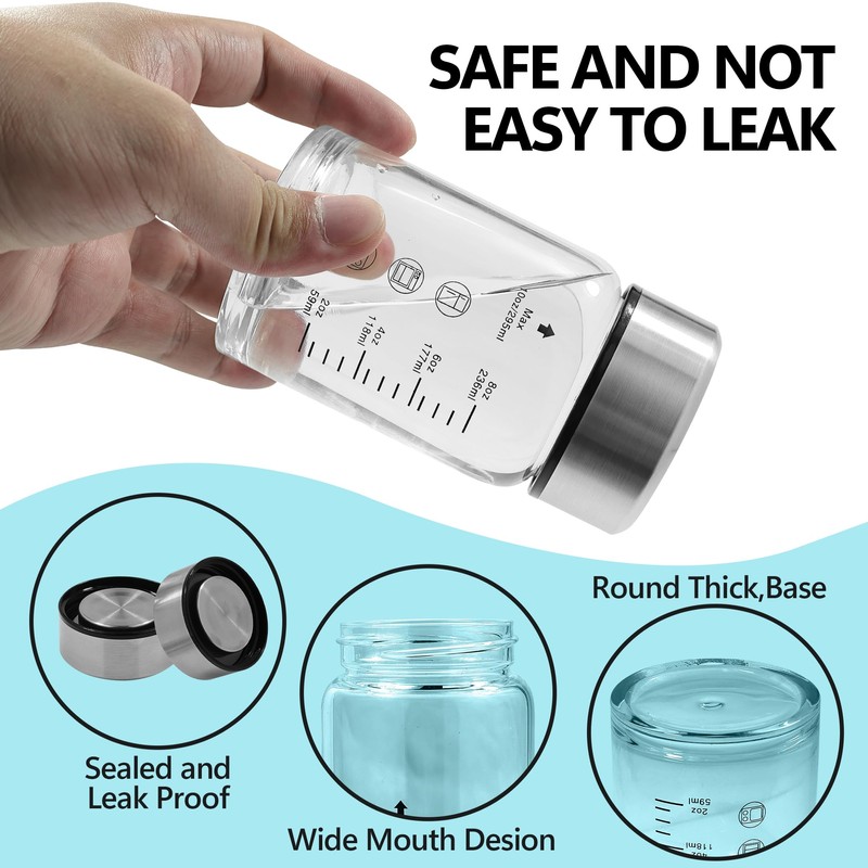 - Premium Glass Quality: Crafted from good-quality borosilicate glass and chemically odorless. Capable of withstanding cold and hot impacts, and boasts crack resistance and durability. These shaker bottles are food-safe, allowing you to enjoy various beverages with peace of mind