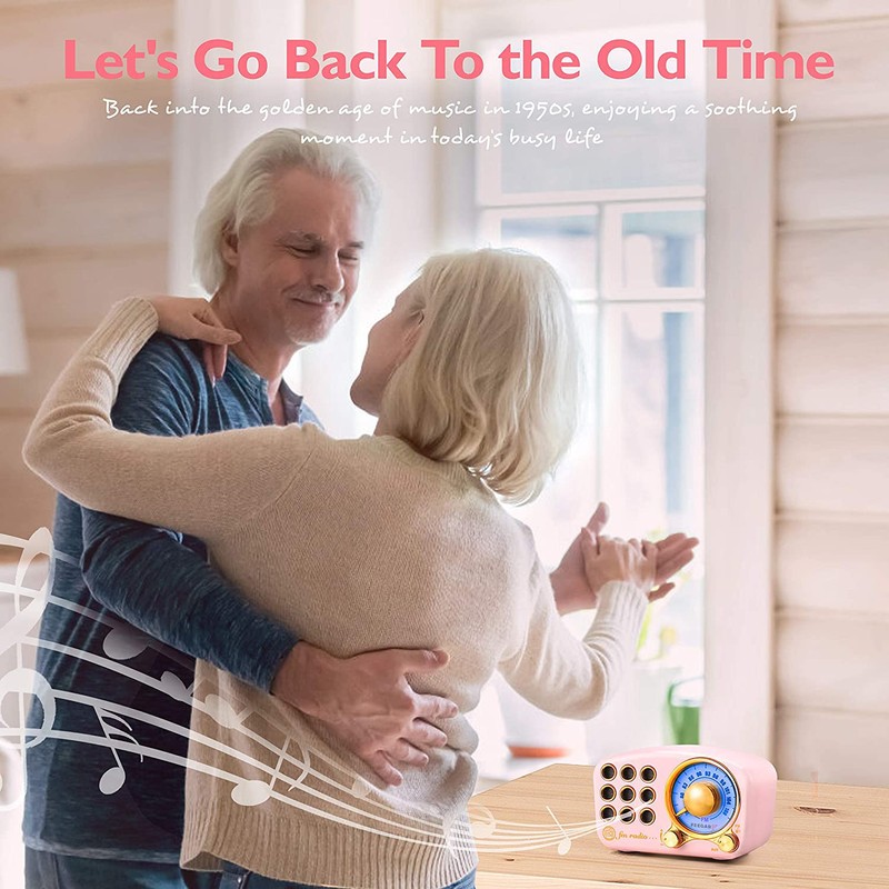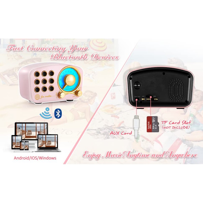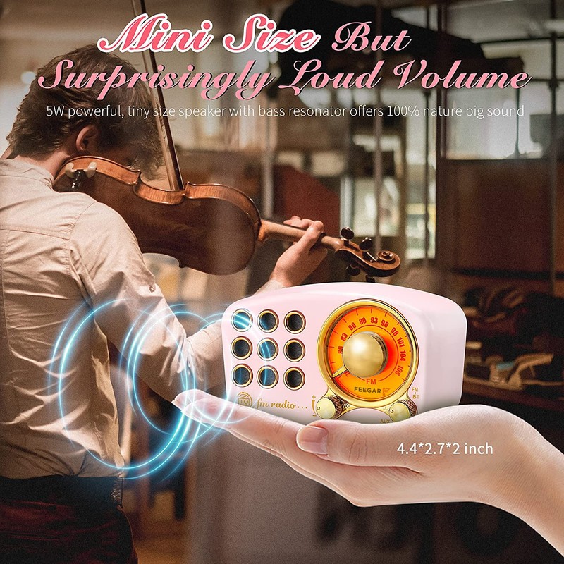 Radio Feegar Retro Bluetooth Speaker, Vintage FM Radio with Old-Fashioned Classic Style, Strong Bass Amplification, Loud Volume, F Card Slot and MP3 Player AUX Operation, MicroSD Card (Pink)