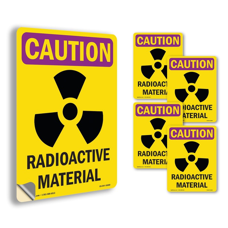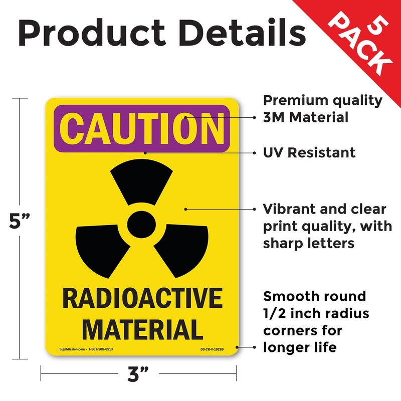 Radioactive Materials With Symbol OSHA Caution Radiation Vinyl Decal Label 5 Inch x 3.5 Inch - 5 Pack