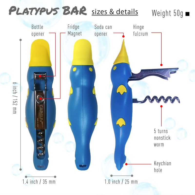 - Unique Platypus Design: This multi-function opener features a fun and quirky platypus shape, combining practicality with a playful aesthetic for your kitchen or bar.