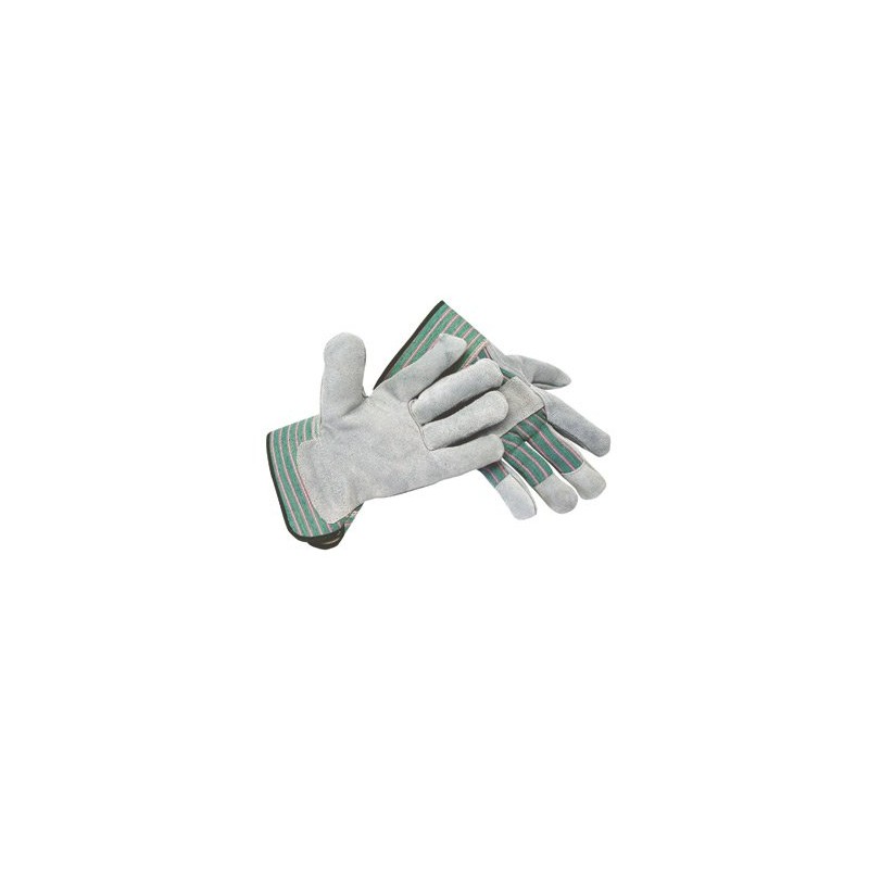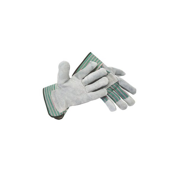Radnor Medium Select Shoulder Grade Split Leather Palm Gloves With Rubberized Safety Cuff, Striped Canvas Back And Reinforced Knuckle Strap, Pull Tab, Index Finger And Fingertips