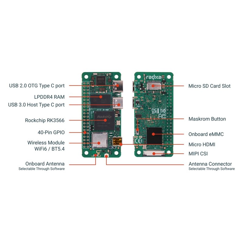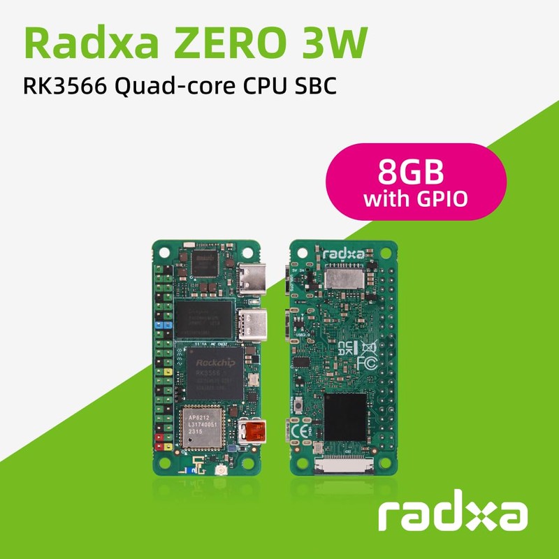 Radxa Zero 3W RK3566 4-core CPU SBC, GPU, NPU, HDMI with 1080P Output, Single Board Computer (Radxa Zero 3W 8GB with GPIO)