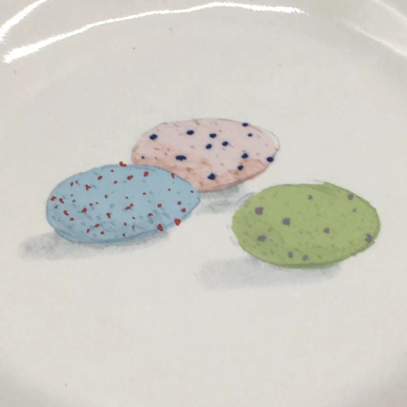 Rae Dunn x4 RAE DUNN Speckled Eggs Easter Appetizer Plate Set Dessert Blue Pink RETIRED
