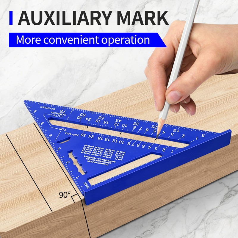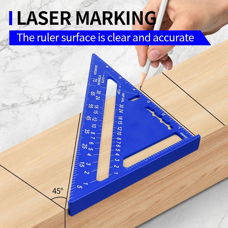 - 【Multi-functional triangle ruler】Carpentry squares have the characteristics of frame angle, triangle, miter angle and protractor angle at the same time, and can also be used as a scriber and saw blade guide.