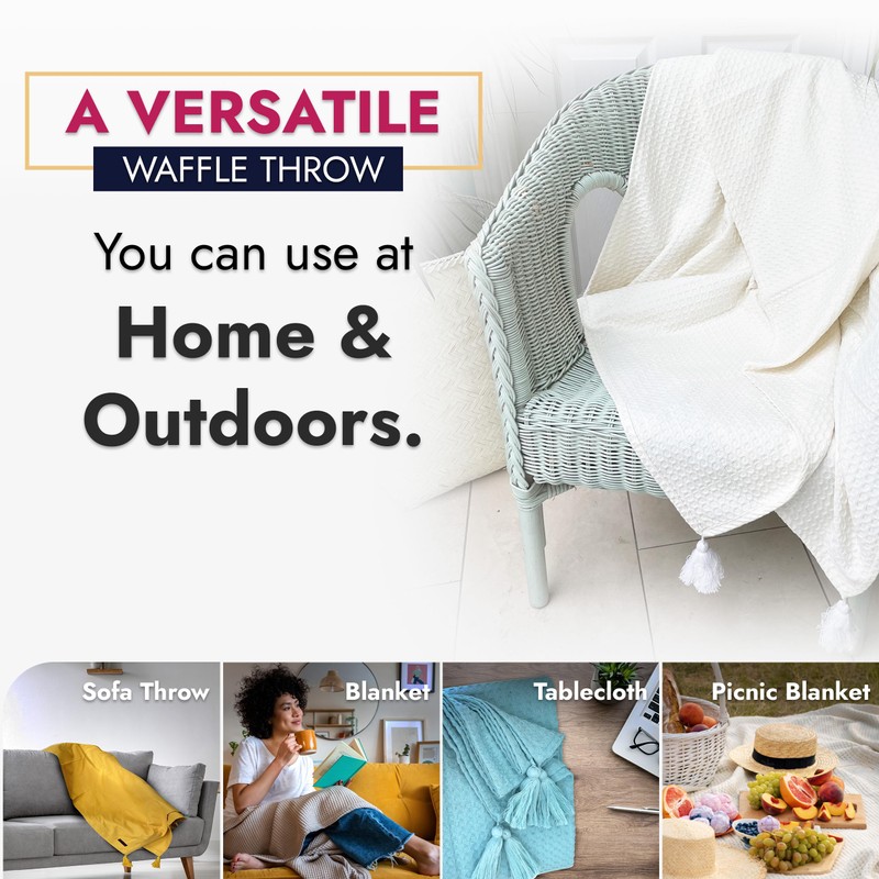 - Embrace Passionate Warmth: Wrap yourself in the comfort of our 100% cotton waffle throws for sofas and beds. Our chunky waffle weave textured bed throw is a gentle caress that gives you a satisfying sensation, keeping you cosy and loved during chilly days and nights.