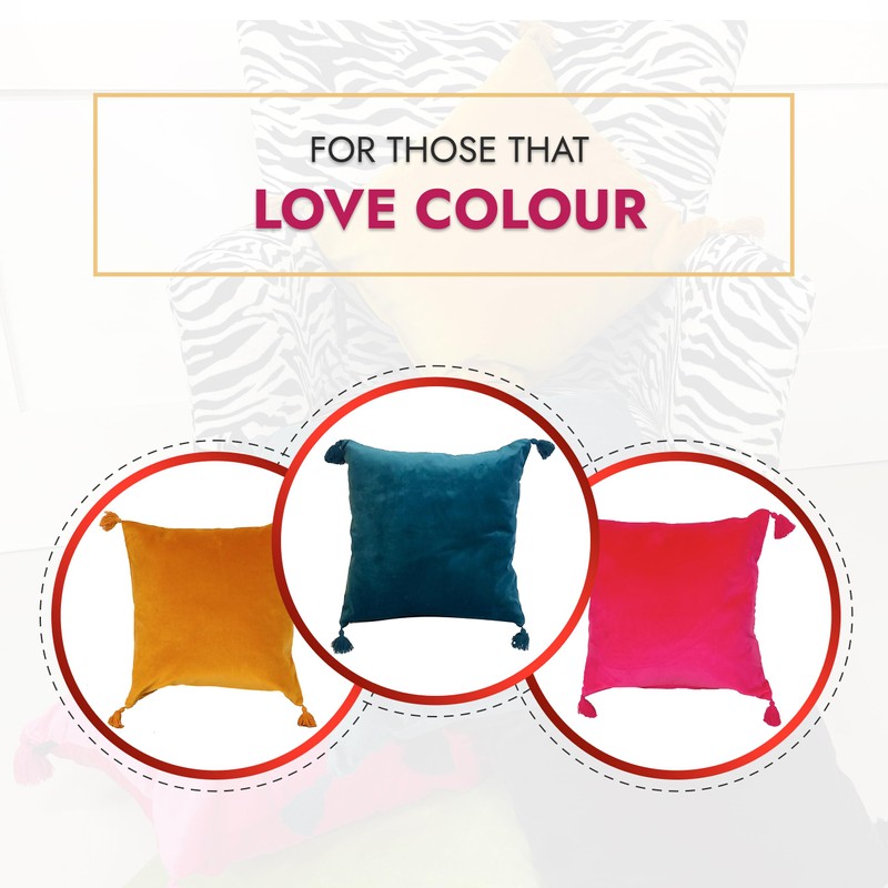 Ragged Rose Velvet Cushion Covers - Sasha Square Tassel Cushion Covers 45cm x 45 cm - Soft, Elegant, Luxury Cotton Velvet Fabric Pillow Cases for Lounge Area & Bedroom, Mustard