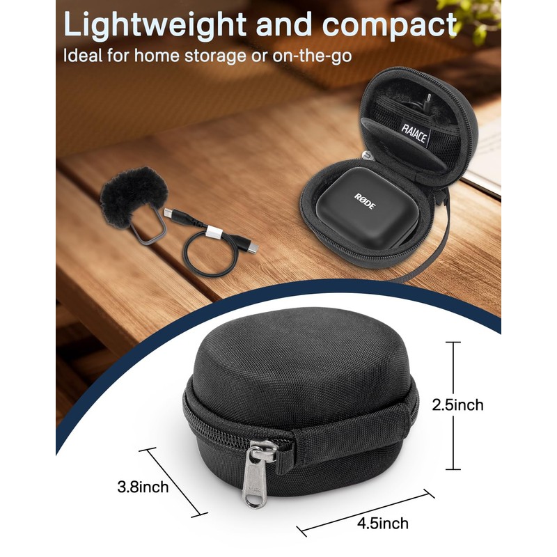 RAIACE Hard Travel Case Compatible RODE Compact Microphone, Carrying Storage Bag. - Black(Black Lining)
