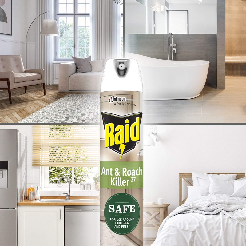 Raid Ant and Roach Killer spray is safe for use around children and pets when used as directed. Its effective, plant-based formula is made with essential oils, including lemongrass extract and pine tree derived geraniol. Raid Ant and Roach kills different types of ants, roaches, and other crawling and flying insects. It quickly kills German roaches and ants (except fire and harvester). Raid Ant and Roach spray will help you protect your home and family from pests, with no compromise between safety and efficacy.