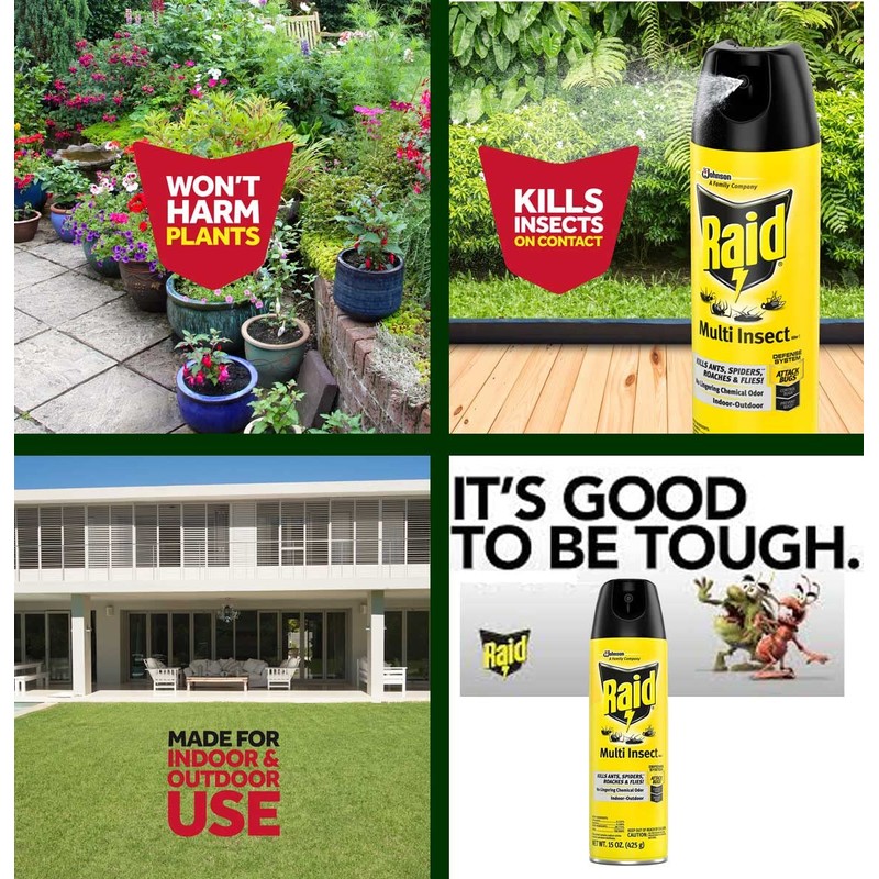 - Raid Multi Insect Spray kills bugs on contact