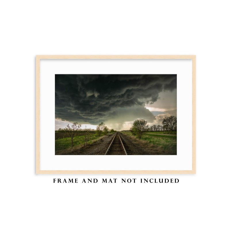 Railroad Photography Print (Not Framed) Picture of Train Tracks Leading Into Dark Storm Clouds in Kansas Thunderstorm Wall Art Weather Decor 4x6 to 40x60