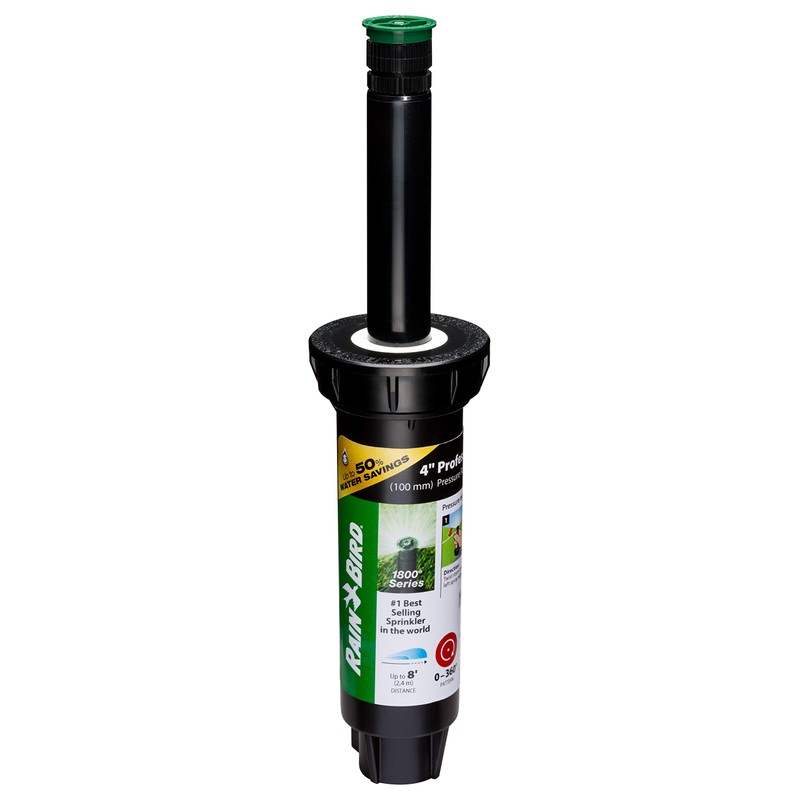 Rain Bird 1804AP8PRS Pressure Regulating (PRS) Professional Pop-Up Sprinkler, Adjustable 0 - 360° Pattern, 6' - 8' Spray Distance, 4" Pop-up Height