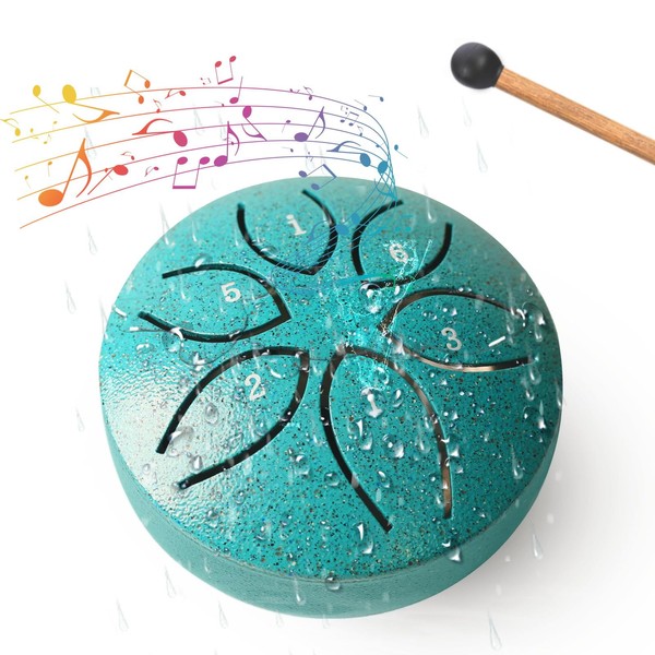 Rain Drum for Outside Garden, 2024 New Steel Tongue Drum for Outside When It Rains, Mini Chakra Drum, 3 Inches 6 Notes Tongue Drum Rain Chime Musical Gift for Adult Camping Enthusiast (Turquoise)