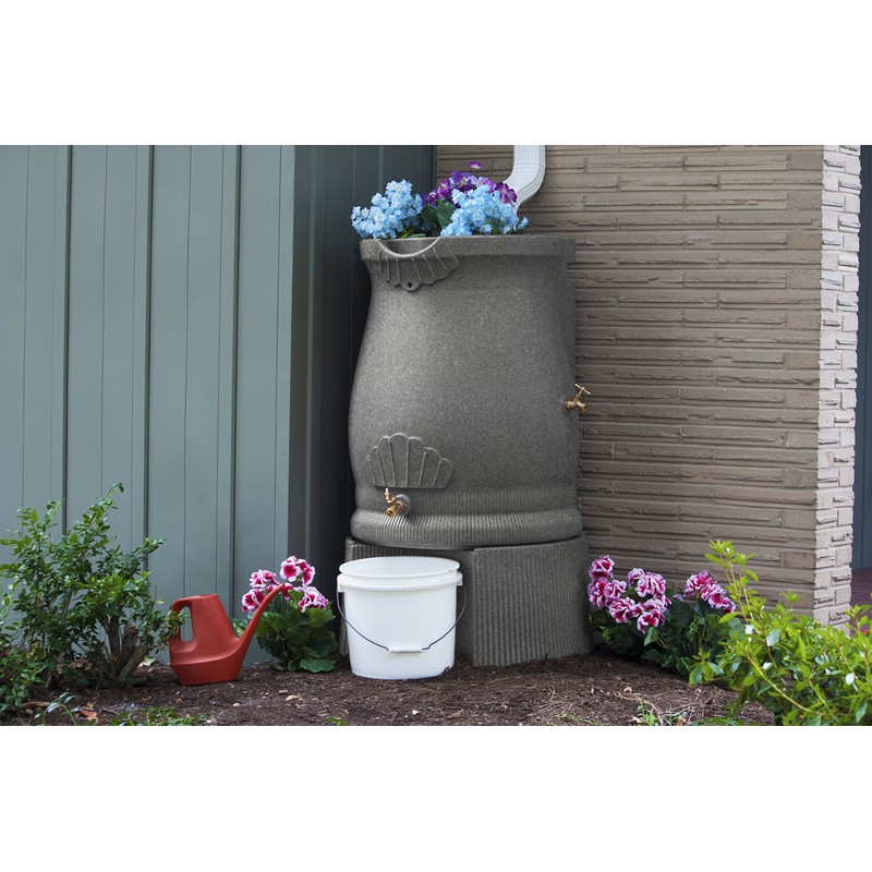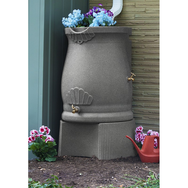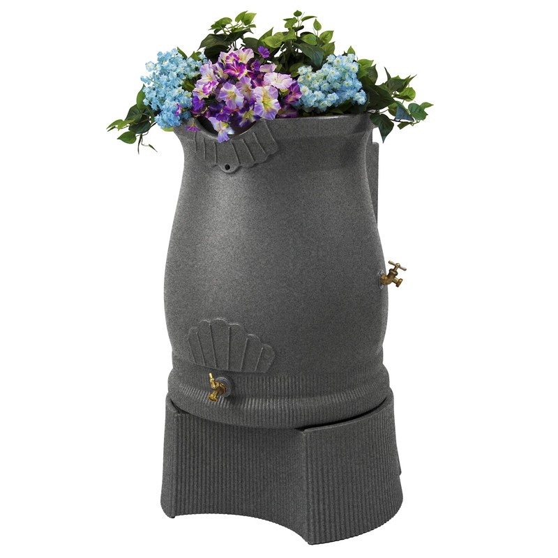 Most rain barrels on the market don't fully utilize the water they hold because the spigot is located about halfway up the barrel. This is to allow buckets to be filled, but leaves about a quarter of the water behind. & this remaining water is standing which can be hazardous. Barrels with optimally located spigots don't allow room for buckets & leave only hoses as the draining option. The rain Wizard 50 Urn stand solves these issues by lifting & supporting the rain Wizard 50 Urn rain barrel off the ground. With increased elevation, the barrel can drain at a much faster rate. Any filling device can be easily placed below the spigot without awkward tilting or maneuvering. The rugged design holds up under weight & weather, resists fading, bulging, & bowing. Comes in 4 unique colors to mix & match with your barrel.