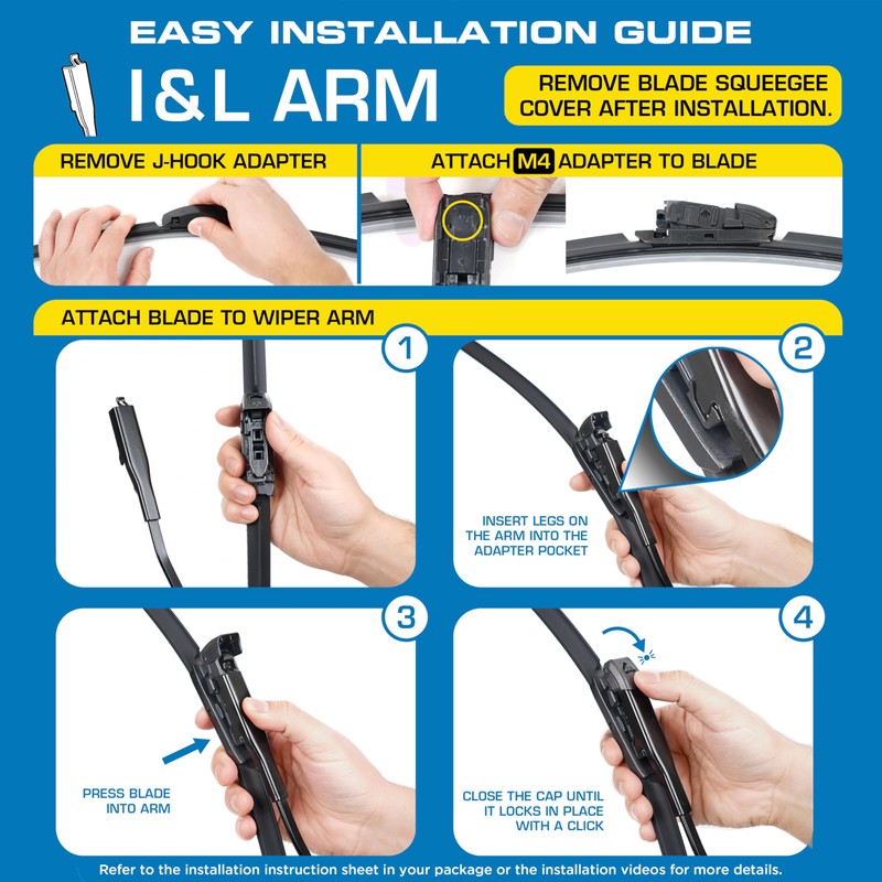 • Quiet Operation - Featuring a graphite-coated, synthetic rubber squeegee that helps reduce friction and related noise during usage. DISCLAIMER: Please remove the yellow squeegee cover after installation to ensure optimal performance. Failure to do so will prevent the wiper blades from working properly.