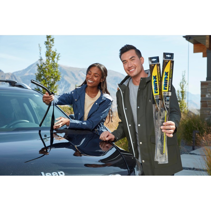 Outsmart the toughest elements with Rain-X Silicone AdvantEdge. Rain-X Silicone AdvantEdge is designed with a resilient silicone rubber squeegee that lasts 2X longer than traditional rubber squeegees and consistently performs in extreme temperatures and inclement weather conditions. From the icy cold winters to blazing hot summers, these wiper blades provide all-weather performance with superior wipe quality. Silicone is a versatile material, maintaining its chemical stability against wet weather, extreme temperatures, chemicals and oils, and harsh environmental conditions. Silicone has high tear strength, and its flexible nature allows it to withstand continuous stresses and pressures. These blades also feature advanced spring beam technology with an aerodynamic spoiler that increases blade contact on the windshield and minimizes wind lift - maximizing wipe quality.