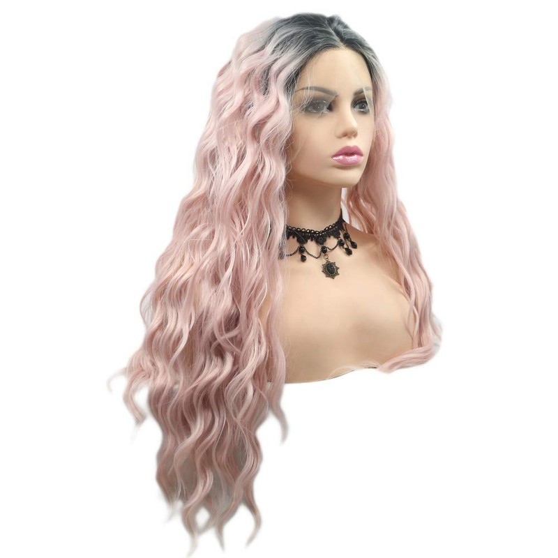 RainaHair Mermaid Wig Long Loose Wave Curly Wig Dark Roots Ombre Baby Pink Lace Front Wig Synthetic Glueless Heat Resistant Hair Flawless Wigs for Women Drag Queen Christmas Cosplay Wigs