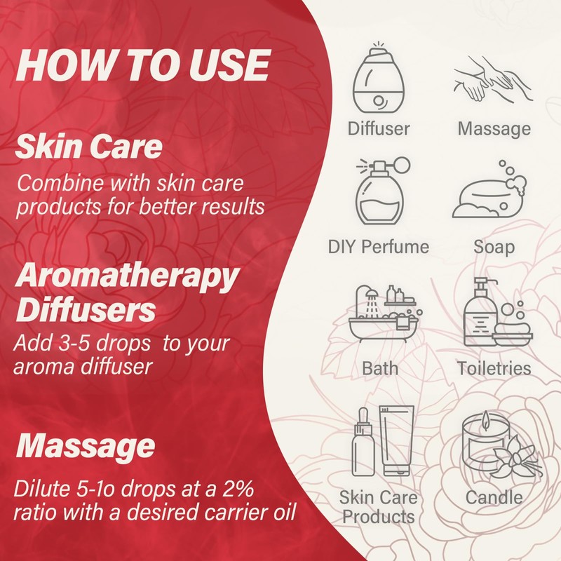 Rose Essential Oil Pure Organic Rose Oil for Diffuser, Perfume, Massage, Aroma, Bath - 10ML