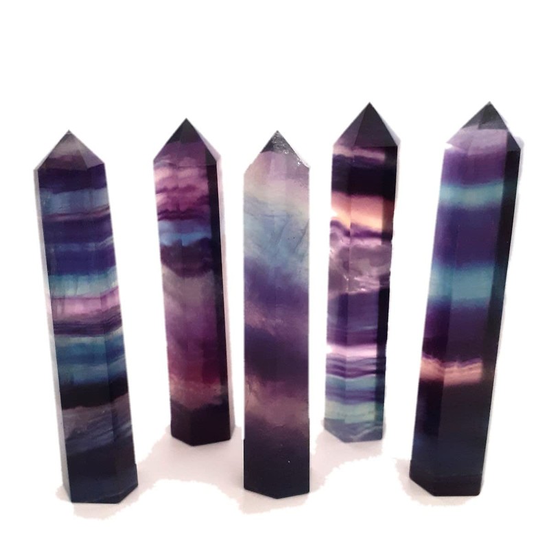 • Beautiful little fluorite rainbow lace as a standing object. Rainbow Fluorite Point Multicolor Crystal Standing
