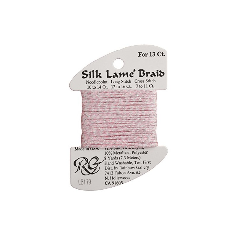 Rainbow Gallery Silk Lame Braid Metallic Needlepoint Thread Pinks, Cotton Candy - LB179