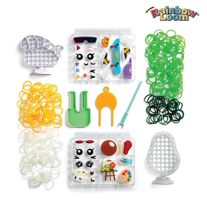 - Set Includes 300 Rubber Bands, 2 Character Frames, 2 Accessory Frames, 1 Speed Loom, 2 hooks, 2 Showcases, Instructions