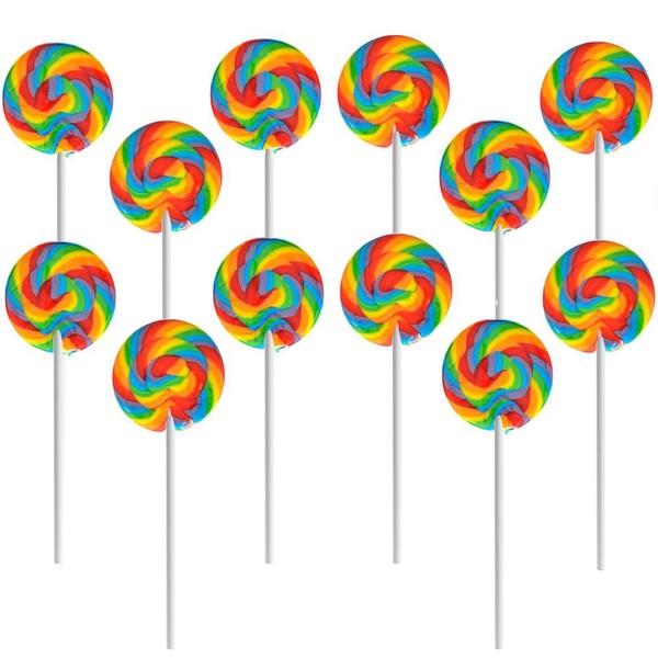 - RAINBOW SWIRL LOLLIPOPS: Our mouthwatering 3" long-lasting Mixed Fruit flavors make these Candy Suckers a special treat for students, customers at the doctor's office or bank and even for adults!