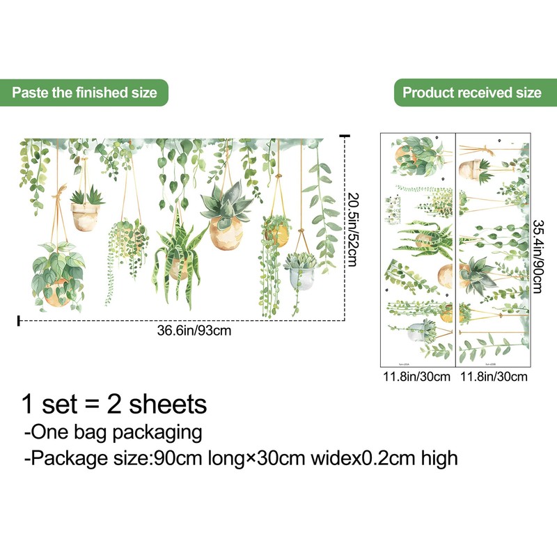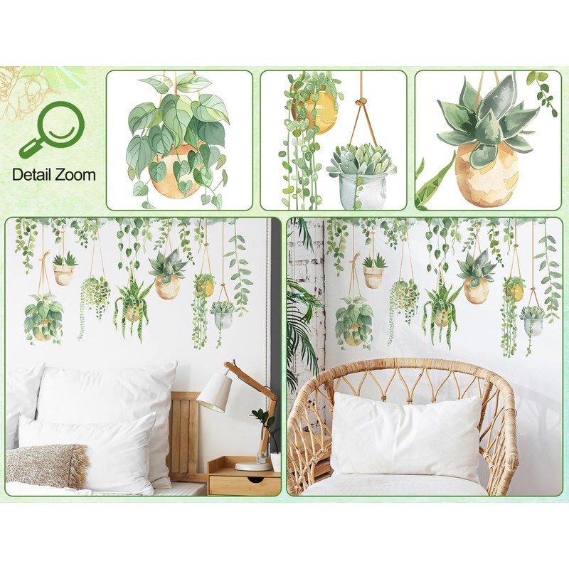 - Hanging plants flowers wall sticker:This green hanging wall decals peel and stick are crafted from high-quality vinyl materials, ensuring safety and friendly. With their large size and exquisite designs,our wallpaper can decorate your walls and rooms