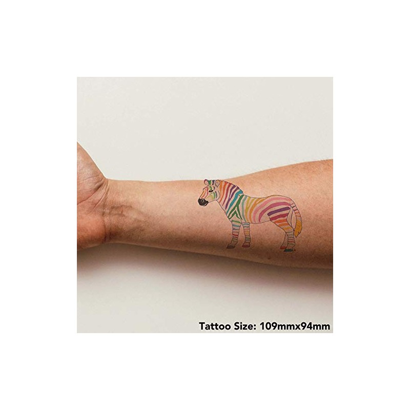 'Rainbow Zebra' Temporary Tattoo - Water Resistant, Skin-Safe, Non-Toxic Transfer (TO00029354)